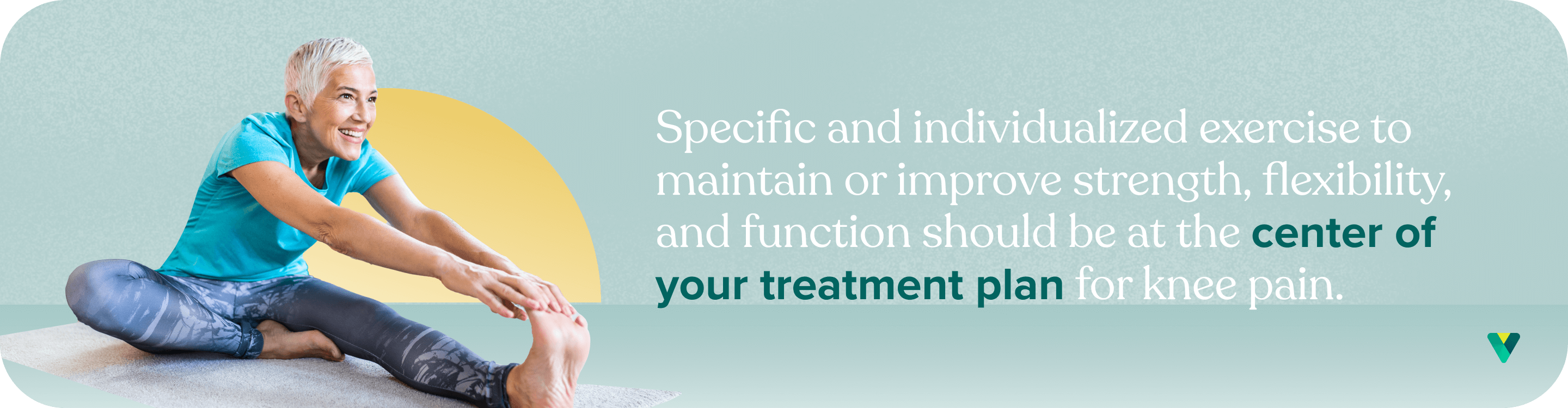 - Exercise: Have you ever heard the saying “motion is lotion?” Well, it’s true! Specific and individualized exercise to maintain or improve strength, flexibility, and function should be at the center of your treatment plan for knee pain. Our doctors of physical therapy can support you with recommendations for activities that will allow you to keep moving without worsening your pain. And contrary to popular belief, running at a recreational (non-professional) level does not cause knee osteoarthritis and can actually be protective to your joints. Weight-bearing exercise, such as walking and running, as well as strength-training, improves the health of your knees. Our bodies adapt to the stressors to which we expose them and they become stronger. This means that as long as you listen to your body, you can and should keep moving!
