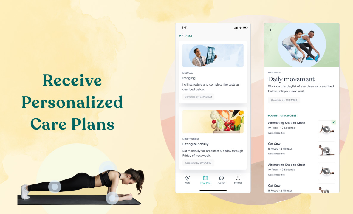Get convenient, virtual access to a holistic team of specialty medical doctors, physical therapists, health coaches, and nutritionists in one place.